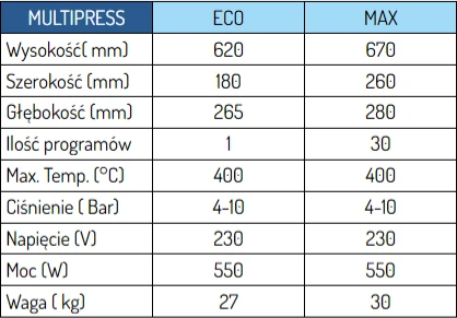 We wtryskarce MULTIPRESS ECO zastosowano najnowsze osiągnięcia techniki, uzyskując jednocześnie wyjątkowo korzystny stosunek ceny do możliwości użytkowych. Urządzenie kontroluje przebieg wygrzewania i wtrysku, sygnalizując poszczególne etapy pracy.